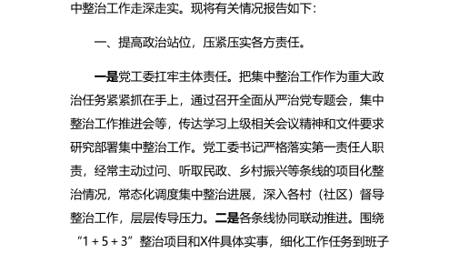 某乡镇关于群众身边不正之风和腐败问题集中整治工作情况汇报