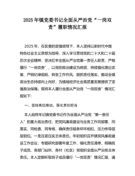 2025年镇党委书记全面从严治党“一岗双责”履职情况汇报