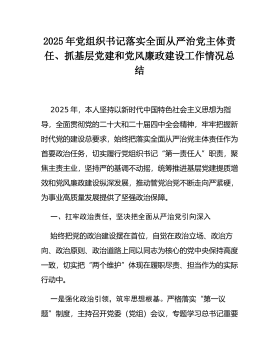 2025年党组织书记落实全面从严治党主体责任、抓基层党建和党风廉政建设工作情况总结