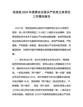 局党组2025年度落实全面从严治党主体责任工作情况报告