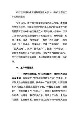 市行政审批和便民服务局党组关于2025年前三季度工作总结的报告