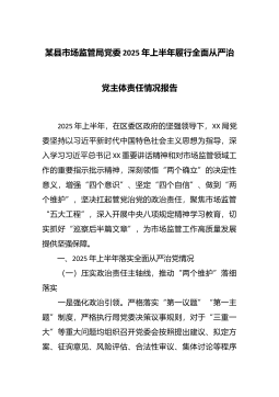 局党组2025年度落实全面从严治党主体责任工作情况报告