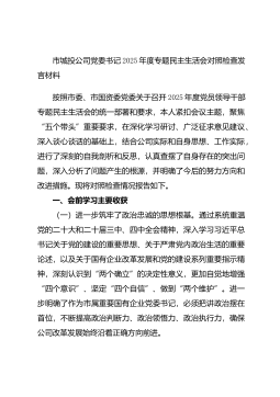 市民政局党组书记2025年度专题民主生活会发言提纲(五个带头)