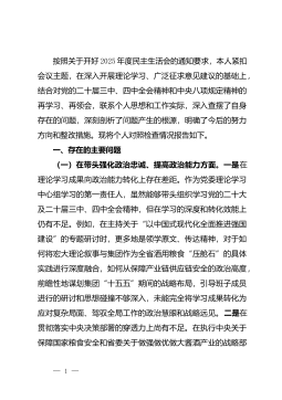 2025年度民主生活会对照检查材料根据本次民主生活会的要求,本人在2025年度民主生活会上。通过把自己摆进去、把职责摆进去、把工作摆进去,认真查摆自身存在的差距与不足,并明确了今后的整改方向与具体措施。现将对照检查情况汇报如下:一、对照“带头强化政治忠诚、提高政治能力”方面我始终将政治建设置于首位,在思想上深刻认同“两个确立”的决定性意义,在行动上自觉践行“两个维护”,确保在政治立场、政治方向、政治原则、政治道路上同以习近平同志为核心的党中央保持高度一致,不折不扣地推动中央和上级党委的各项决策部署在本职领域落地生根。但在实际工作中,仍感到政治理论学习的“转化效能”有待提升,存在一定的“知行断层...