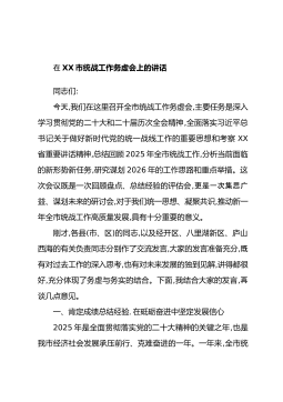 在XX市委经济工作会议上的讲话同志们:今天,我们召开市委经济工作会议,主要任务是,坚持以习近平新时代中国特色社会主义思想为指导,深入学习贯彻党的二十大和二十届三中、四中全会精神,全面落实中央、省委经济工作会议的决策部署,总结2025“”年及十四五时期全市经济工作,分析当前经济形势,部署2026年经济工作,动员全市上下坚定信心、开拓奋进,“”为实现十五五良好开局而努力奋斗。刚刚过去的一年,是全面贯彻党的二十大精神的关键之年,也“”是十四五规划的收官之年。全市上下在党中央和省委的坚强领导下,深入学习贯彻习近平经济思想,“”锚定三个努力成为的奋斗目标,迎难而上、真抓实干,推动经济运行保持了稳中有进、...