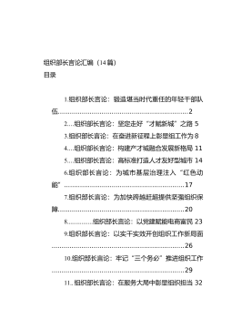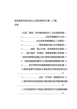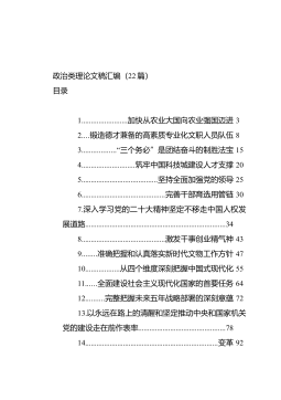 政治类理论文稿汇编(22篇)目录1........................加快从农业大国向农业强国迈进32....锻造德才兼备的高素质专业化文职人员队伍83..................“三个务必”是团结奋斗的制胜法宝154............................筑牢中国科技城建设人才支撑205........................................坚持全面加强党的领导256............................................完善干部育选用管链307.深入学习党的二十大精神坚定不移走中国人权发展道路......
