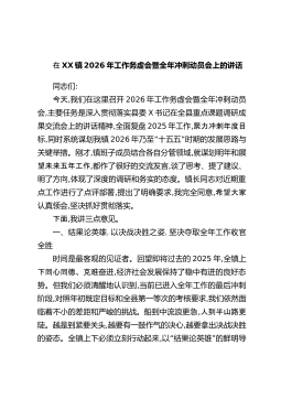 在XX镇2026年工作务虚会暨全年冲刺动员会上的讲话同志们:今天,我们在这里召开2026年工作务虚会暨全年冲刺动员会,主要任务是深入贯彻落实县委X书记在全县重点课题调研成果交流会上的讲话精神,全面复盘2025年工作,聚力冲刺年度目标,同时系统谋划我镇2026“”年乃至十五五时期的发展思路与关键举措。刚才,镇班子成员结合各自分管领域,就谋划明年和展望未来五年工作,都作了很好的交流发言,谈了思考、提了建议、明了方向,体现了深度的调研和务实的态度。镇长同志对近期重点工作进行了点评部署,提出了明确要求,我完全同意,希望大家认真领会,坚决抓好贯彻落实。下面,我讲三点意见。一、结果论英雄,以决战决胜之姿,...
