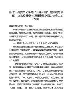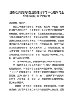 县委组织部部长在县委理论学习中心组学习全会精神研讨会上的发言各位领导,同志们:党的二十届四中全会在“十四五”收官与“十五五”启幕的关键节点胜利召开,为全面建设社会主义现代化国家擘画了宏伟蓝图。全会公报明确指出,高质量发展是全面建设社会主义现代化国家的首要任务,而坚持党的领导、加强党的建设则是推动高质量发展的根本保证。作为县委组织部部长,在县委理论学习中心组集中学习研讨中,我深刻体会到,组织工作必须主动对接全会部署、融入发展大局,以“抓党建促发展、育人才强支撑、锻队伍聚合力”的实际行动,把全会精神转化为县域高质量发展的组织动能。下面,我结合学习思考和工作实际,谈三点认识和举措。一、深学细悟明方向...