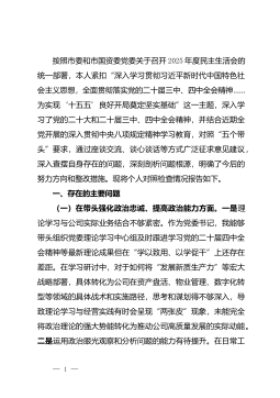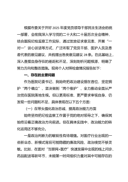 2025年某局领导班子关于县委巡察组反馈问题整改专题民主生活会对照检查材料根据县委统一部署,2025年*月至*月,县委巡察组对县卫生健康局党组开展了常规巡察,并于2025年*月反馈了巡察意见,指出我局在贯彻落实党中央重大决策部署、全面从严治党、新时代党的组织路线以及巡察整改和成果运用等方面存在的*类*项突出问题。巡察反馈意见严肃深刻、切中要害,充分体现了县委对卫生健康事业的高度重视和对卫健系统干部的严管厚爱。局领导班子高度重视,坚决扛起整改政治责任,第一时间召开专题会议传达学习反馈意见,研究制定整改方案,逐条逐项分解任务。在此基础上,紧扣巡察反馈问题,深入学习领会党的二十大和二十届四中全会精神...