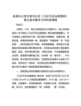 县委办公室支部书记在《习近平谈治国理政》第五卷专题学习时的授课稿