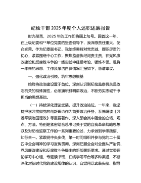 2025年度述职述廉报告(精品)2025年,在总行党委的坚强领导和部门的悉心指导下,我始终坚持以党员标准严格要求自己,立足本职岗位,不断深化理论学习,积极投身全行中心工作,在思想淬炼和实践锻炼中提升了综合素养与履职能力。一年来,我恪尽职守,勤勉务实,圆满完成了各项工作任务。现将本年度个人履职及廉洁自律情况报告如下:一、强化思想引领,筑牢理论根基我始终将政治理论学习置于首位,坚持以学铸魂、以学增智、以学正风、以学促干。一是深学细悟,提升政治判断力。我深入学习贯彻习近平新时代中国特色社会主义思想,特别是将学习宣传贯彻党的二十届三中全会精神作为首要政治任务。通过参加党委理论学习中心组(扩大)学习、支...