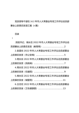 党员领导干部在2022年市人大常委会专项工作评议动员部署会上的表态发言汇编(6篇)
