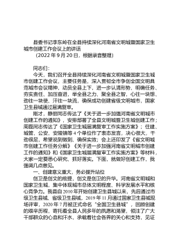 县委书记李东岭:在全县持续深化河南省文明城暨国家卫生城市创建工作会议上的讲话(20220920)