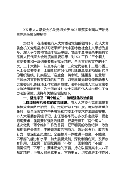 XX市人大常委会机关党组关于2022年落实全面从严治党主体责任情况的报告