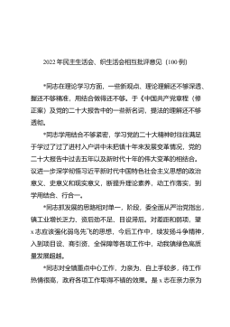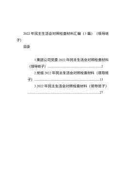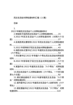 2022年民主生活会查找问题示例集锦(16大方面375条)