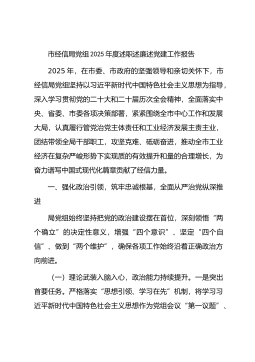 市委编办党总支2025年落实全面从严治党主体责任工作情况报告2025年,市委编办党总支坚持以习近平新时代中国特色社会主义思想为指导,深入学习贯彻党的二十大及二十届三中、四中全会精神,坚决扛牢全面从严治党主体责任,坚持“围绕中心抓党建、抓好党建促发展”的总体思路,切实推动党建与业务工作同频共振、同向发力,先后被评为“服务业发展工作先进单位”“全面深化改革工作先进单位”,党总支被市委市直机关工委评为“先进基层党组织”。一、主要工作情况(一)坚持首位首抓,发挥“政治引领”作用,筑牢信仰之“基”。一是在提升政治意识上着力。严格落实“第一议题”制度,组织开展《习近平关于机构编制工作论述摘编》学习研讨活动...