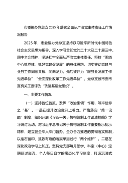 市委编办党总支2025年落实全面从严治党主体责任工作情况报告
