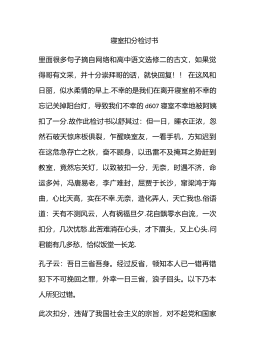 寝室卫生不合格检讨书今天,我怀着愧疚和懊悔写下这份检讨书,以向您表示我对寝室卫生不干净这种不良行为的深刻认识以及再也不在检查时做出不开门这种举措的决心.早在我踏进校门,老师就已三申五令,一再强调,要注意维护寝室卫生,学校领导会不定时查寝,但我却在班长应经通知并说明检查不合格严重后果的情况下,依然犯下这样的错误,在查寝时没有收拾寝室,还不在寝室,不关心寝室的荣誉,这是很严重的错误。这是一次十分深刻的检查,我对于我这次犯的错误感到很惭愧,我不应该违背老师的规定,我们作为学生就应该完全的听从老师的话,而我这次没有很好的重视到老师讲的话。我感到很抱歉,我希望老师可以原谅我的错误,我这次的悔过真的很深刻...