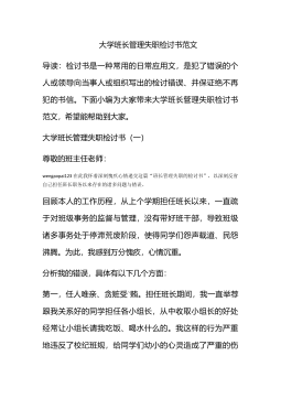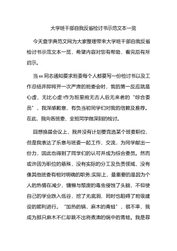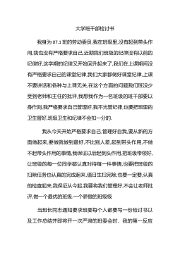 大学班干部检讨书 我身为07.1班的劳动委员,我在班级里,没有起到带头作用,我也没有严格要求自己,近期我们班级的纪律没有以前的纪律好,这学期的纪律又开始回升起来了,我们在上课期间没有严格要求自己的课堂纪律,我们大家都做好课堂纪律,上课不要讲话和各种与上课无关,在这个方面的问题我们班没少受到老师和主任的批评,我想我作为一名班级的班干部要以身作则,我严格要求自己管理好,我不光管纪律,也要把班里的卫生管好,班级卫生和纪律不会扣一分的. 我从今天开始严格要求自己,管理好自我,要从新的方面做起来,要做就做到最好,不比别人差,起到带头作用,不做不起带头作用的事情,我保证以后起到头作用,把班级带领好,...