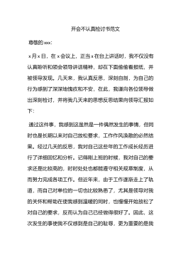 开会思想不集中的检讨书尊敬的学校领导:我是戏剧影视文学系2004级二班的李XX。说真的,我从小写过很多检讨书,可以称之为道中高手,可是这次,我想了好久,却仍不知如何下笔。或许在我看来,人生总是在重复中度过的,也因此我才对写检讨有些麻木了。但这次却不知为什么,我竟有些不知下笔,大概是自己都知道自己这次犯的错太多太大,所以竟无以言语。辅导员在以前开系会的时候,我总是埋头干其他的事情,很少认真听过——除了刚进大学校门开的那次系会——因为我总觉得我只要稍微注意下,就不会触及校规校纪。但我终究还是忘了,我这懒惰的本性。而我这懒惰的本性在上学年下学期的时候,发挥到了无以复加的极致。每天昏昏迷迷终日不知学习...