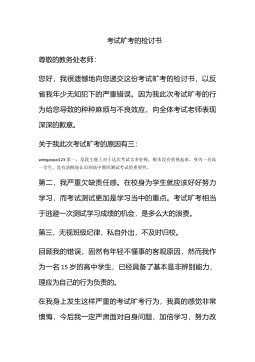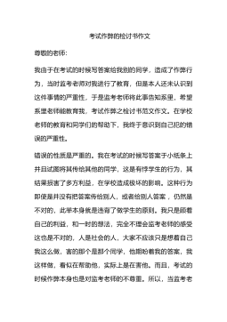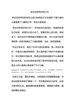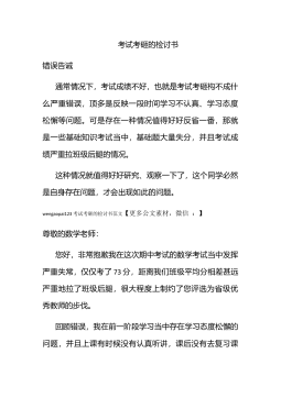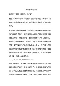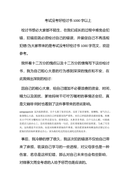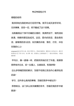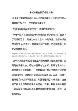 考试考差自我反省检讨书由于考试考差的自我反省检讨书应该要怎么写呢?以下是小编收集的检讨书,仅供大家阅读参考!考试考差自我反省检讨书一尊敬的数学老师:伴随一曲《每当我走过老师的窗前》歌声的结束,我流下了动情的泪水,我身为一名北京XX中的学生,数学考试竟然得到了XX的低分,简直是给学校丢脸,给老师丢脸,也是让我愧疚不已。wengaopai123我的父母千辛万苦地盼着我读书好,学习好,让我进入了这所中学读书,可是我却没有能够好好学习,导致了成绩一直上不去,其中数学成绩更是非常的不好。这一次我数学考试没考好是严重地拖累了全班的分数,我真的有愧于大家。经过一番思考与分析,我思考了为什么我分数这么低的原因...
