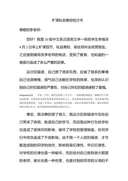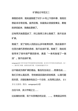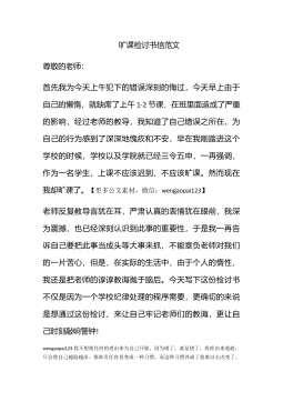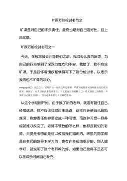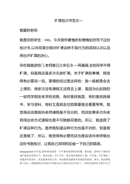 旷课检讨书范文一敬爱的老师:我是你的学生:XXX。今天我怀着愧疚和懊悔给您写下这份检讨书,以向您表示我对旷课这种不良行为的深刻认识以及再也不旷课的决心。早在我踏进校门,老师就已三申五令,一再强调,全校同学不得旷课。但是我还是多次无故旷课。关于旷课的事情,我觉得有必要说一说。事情的经过是这样的:我一般都是会去上课的,很多次没有请假又没有去上课,是因为比如我的一些同学朋友来学校找我,有时是找我耍,有时是找我借书,学习资料,有时又是朋友住院需要我去看看等等。我觉得这些原因向老师请假是不充分的,而且如果多次向老师用这些方式请假也是不可能都同意的。所以,我选择了旷课这种行为。虽然我知道这种行为也是不对的...