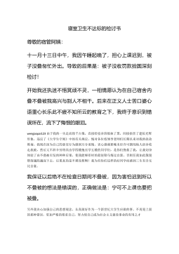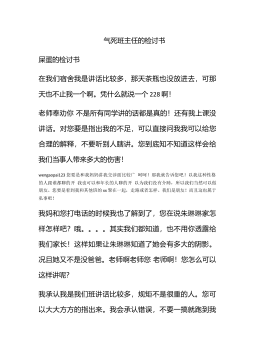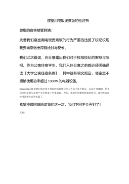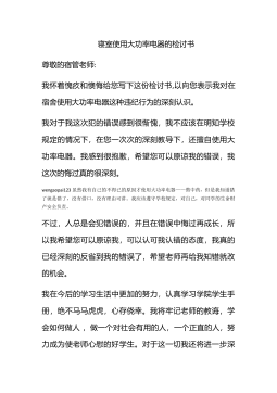 寝室使用大功率电器的检讨书尊敬的宿管老师:我怀着愧疚和懊悔给您写下这份检讨书,以向您表示我对在宿舍使用大功率电器这种违纪行为的深刻认识。我对于我这次犯的错误感到很惭愧,我不应该在明知学校规定的情况下,在您一次次的深刻教导下,还擅自使用大功率电器。我感到很抱歉,希望您可以原谅我的错误,我这次的悔过真的很深刻。wengaopai123虽然我有自己的不得已的原因才使用大功率电器——熬中药,但是我知道错了就是错了,没有借口,没有理由可讲。我应该遵守学校规定,对自己,对同学的生命财产安全负责。不过,人总是会犯错误的,并且在错误中悔过再成长,所以我希望您可以原谅我,可以认可我认错的态度,我真的已经深刻的反...