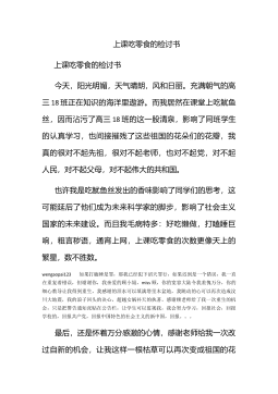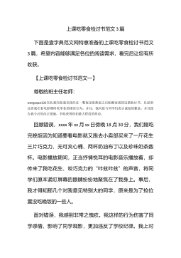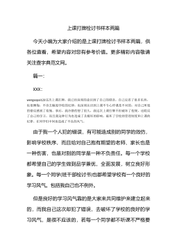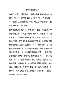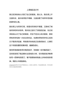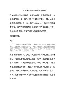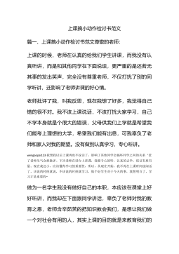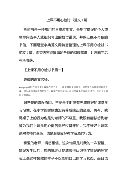 上课不用心检讨书范文2篇检讨书是一种常用的日常应用文,是犯了错误的个人或领导向当事人或组织写出的检讨错误、并保证绝不再犯的书信。下面是查字典范文网特意整理的上课不用心检讨书范文2篇,希望内容能够满足各位的阅读需求,让您看完后有所收获。【上课不用心检讨书篇一】尊敬的语文老师:wengaopai123在语文课上我爬在桌子上,一副无精打采的样子,害的您没有能够很好得上课,因为我的错误惹得您生气,我实在是不应该。在这里我递交这份检讨书,以充分反省自身的错误。归咎我的错误原因,主要是平时没有养成良好的课堂学习习惯,在小学的时候也没有养成端正的坐姿。再有,我爬桌子上的行为也是对老师的不尊重,我没有能够想到...