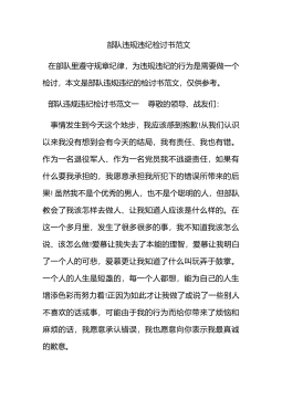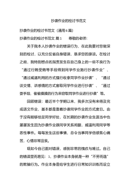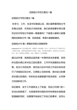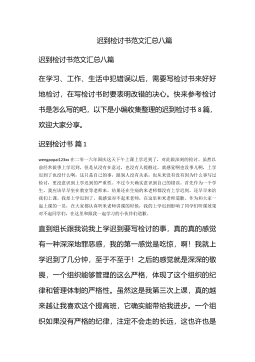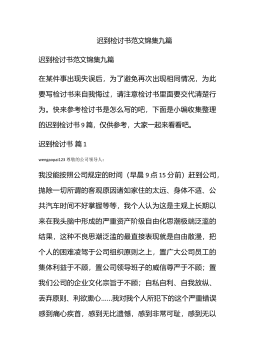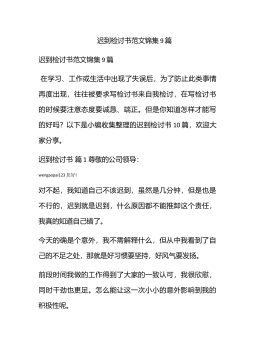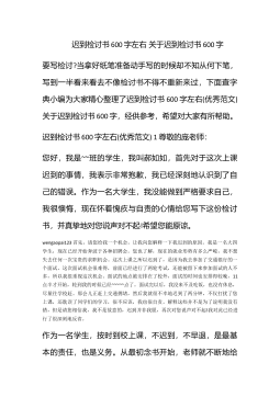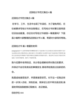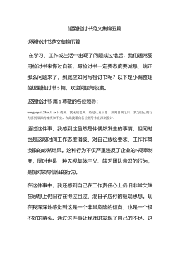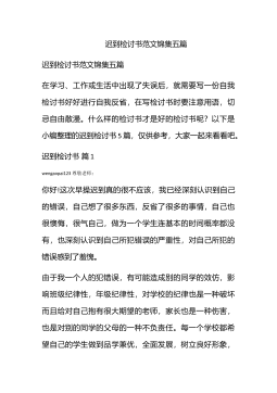 迟到检讨书范文集合6篇迟到检讨书范文集合6篇在学习、工作、生活中出现了失误后,为了避免再犯,往往被要求写检讨书来自我悔过,在写检讨书时要注意用语切忌自由散漫。你还在对写检讨书感到一筹莫展吗?下面是小编帮大家整理的迟到检讨书6篇,希望对大家有所帮助。迟到检讨书篇1敬爱的老师:wengaopai123今天,我怀着愧疚和懊悔给您写下这份检讨书,以向您表示我对迟到的不良行为,深刻认识改正错误的决心!我以前对上学迟到的行为.觉悟不深,在写这份检讨书的同时,我真正意识到这件事情的严重性和错误,我感到非常愧疚!再次,我这种行为还在学校同学间造成了及其坏的影响,破坏了学校的形象。我今后要听老师的话,充分领会理...