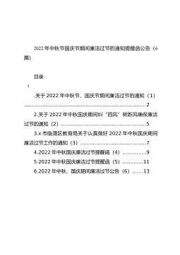 2022年中秋节国庆节期间廉洁过节的通知提醒函公告(6篇)