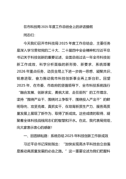 在市科技局2025年度工作总结会上的讲话提纲