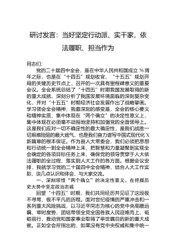 人大副主任在2025年区委理论学习中心组学习研讨会上的发言尊敬的各位领导、同志们:大家好。根据区委的安排,今天我有幸在这里,与大家共同学习研讨习近平总书记在庆祝全国人民代表大会成立70周年大会上的重要讲话精神。下面我围绕如何充分发挥人民代表大会制度“五个显著优势”和“四个方面作用”,从个人角度,谈几点粗浅的认识和体会,不当之处,请大家批评指正。一、深化思想认识,深刻把握人大制度的优越性是履职尽责的根本前提习近平总书记指出,人民代表大会制度是符合中国国情和实际、体现社会主义国家性质、保证人民当家作主、保障实现中华民族伟大复兴的好制度。通过系统学习,我更加深刻地体会到,这一制度的生命力和优越性,集...
