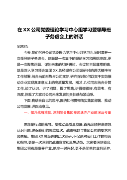 在XX公司党委理论学习中心组学习暨领导班子务虚会上的讲话同志们:今天,我们召开公司党委理论学习中心组学习会,同时套开一次领导班子务虚会。这既是一次集中的理论学习和思想淬炼,更是一次聚焦问题、谋划未来的战略研讨。会议的主题非常明确,就是深入学习领会集团XX总经理在公司调研时的讲话精神与工作部署,结合当前形势与公司实际,研究探讨如何以实干实效推动企业实现真正意义上的高质量发展。刚才,几位同志结合分管工作,谈了认识、讲了问题、提了思路,讲得都很好,有思考、有深度,体现了大家对公司未来发展的责任感与紧迫感。下面,我结合自己的思考,围绕如何贯彻落实集团部署、推动公司发展,讲四点意见。一、提升战略站位,深...
