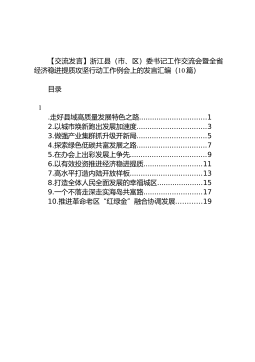 【交流发言】浙江县(市、区)委书记工作交流会暨全省经济稳进提质攻坚行动工作例会上的发言汇编(10篇)