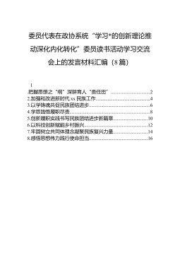 委员代表在政协系统“学习党的创新理论推动深化内化转化”委员读书活动学习交流会上的发言材料汇编(8篇)
