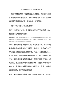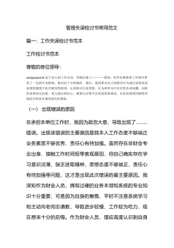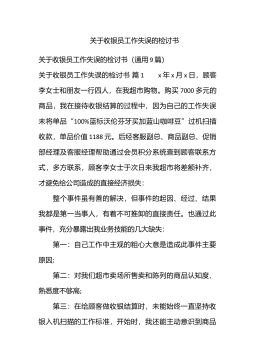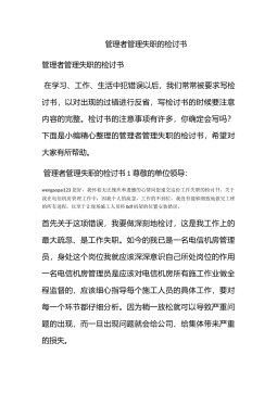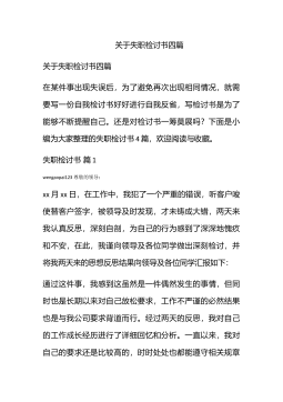 关于失职检讨书四篇关于失职检讨书四篇在某件事出现失误后,为了避免再次出现相同情况,就需要写一份自我检讨书好好进行自我反省,写检讨书是为了能够不断提醒自己。还是对检讨书一筹莫展吗?下面是小编为大家整理的失职检讨书4篇,欢迎阅读与收藏。失职检讨书篇1wengaopai123尊敬的领导:xx月xx日,在工作中,我犯了一个严重的错误,听客户唆使替客户签字,被领导及时发现,才未铸成大错,两天来我认真反思,深刻自剖,为自己的行为感到了深深地愧疚和不安,在此,我谨向领导及各位同学做出深刻检讨,并将我两天来的思想反思结果向领导及各位同学汇报如下:通过这件事,我感到这虽然是一件偶然发生的事情,但同时也是长期以来...