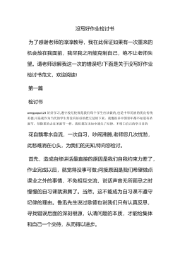 没写好作业检讨书为了感谢老师的淳淳教导,我在此保证如果有一次重来的机会放在我面前,我尽我之所能克制自己,绝不让老师失望。请老师谅解我这一次的错误吧!下面是关于没写好作业检讨书范文,欢迎阅读!第一篇检讨书wengaopai123好好学习,遵守校纪校规是我们每个学生应该做的,也是中华民族的优良传统美德,可是我作为当代的学生却没有好好的把它延续下来。就像很多中国青年都不知道有圣诞节,却隆重的去过圣诞节一样。我们都在无知中遗失了纪律,不明白自己的学习目的花自飘零水自流,一次自习,吵闹沸腾,老师您几次忧愁,此愁难消在心头,为我们的无知,特向您检讨。首先,造成自修讲话最直接的原因是我们自我约束力差了,作业...