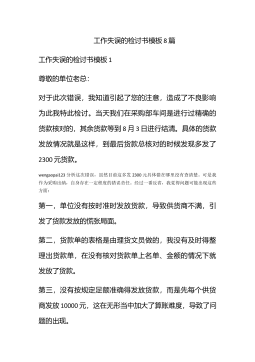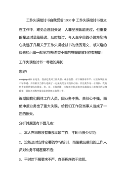 工作失误检讨书自我反省1000字工作失误检讨书范文在工作中,难免会遇到失误,人非圣贤孰能无过。但重要的是及时总结错误,及时检讨。今天查字典的小编为您精心挑选了几篇关于工作失误检讨书的优秀范文,感兴趣的快来和小编一起学习吧!希望小编的整理能够对你有帮助!工作失误检讨书一尊敬的局长:您好!wengaopai123在这里,我表达我对工作失职、疏于监管、对下属要求不严、对业务掌握的不精不透,并给相关当事人造成了一定损失的无比愧疚心情。首先我作为一名科长,我的职责就是贯彻执行国家、省、市、区的法律、法规和政策;并组织实施落实上级相关的法规政策,做好各项程序落实监督管理及指导工作。近期因我们具体工作人员,...
