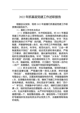 2022年抓党建和落实全面从严治党主体责任述职述责报告