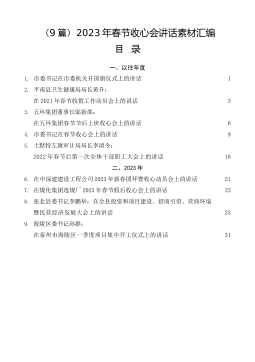 (8篇)在渠县县委常委(扩大)会暨县委一季度工作会上的表态发言材料汇编目录1.县经信局12.县商务局23.县文体旅游局34.县交运局45.县农业农村局56.县投促中心67.县人社局78.县住建局8“”“”奋力夺取兔年开门红引领全年胜在渠县县委常委(扩大)会暨县委一季度工作会上的表态发言摘编(爱上渠县,2023年1月29日)县经信局一是抓主导产业提质。构建户外休闲,汽车配套、手机电脑整机、教育装备,预制菜产业圈,争创中国户外品牌生产基地。预计一季度规上工业总产值达115亿元以上,倾力实现一季度开门红。二是抓服务企业提效。开展规上工业企业全覆盖式走访,助力金城铸业、通济油脂等存量企业提档升级;组织...